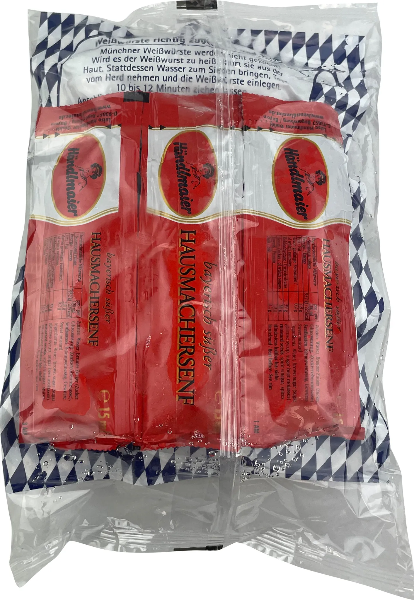 Naturdarm. Enthält Sellerie, Senf und Spuren von Weizen. Händlmaier’s süßer Hausmachersenf: